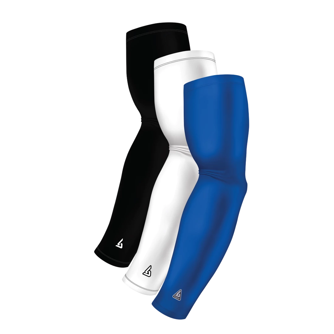3-Pack Bundle | Solids | White/Black/Blue Royal Bright | Pro-Fit Arm Sleeve, developed for active and repetitive use providing a true compression quality. Designed for durable, long-lasting wear. Unlike other sleeves in the market, with B-Driven Sports – 100% Satisfaction Guarantee, we stand by the phrase “you get what you pay for”.̢‰â Sold as One (1) Sleeve