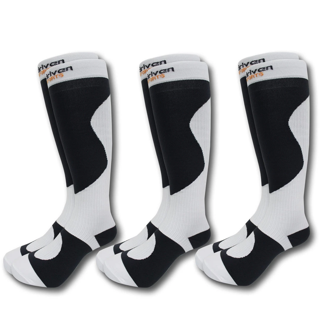 B-Driven Sports 3-Pack Graduated Compression Socks White/Black
