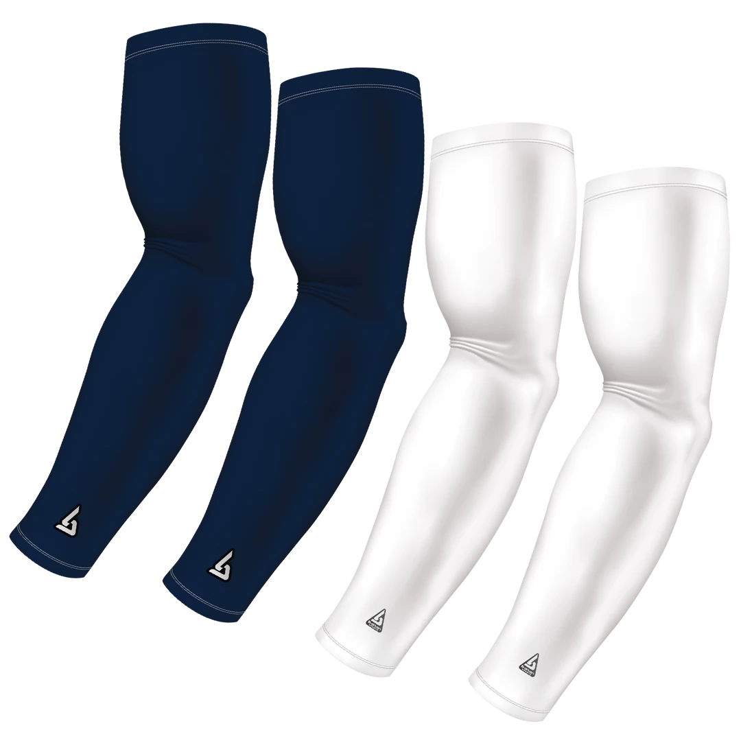 4-Pack Bundle | Solids | White/Blue Navy | Pro-Fit Arm Sleeve, developed for active and repetitive use providing a true compression quality. Designed for durable, long-lasting wear. Unlike other sleeves in the market, with B-Driven Sports – 100% Satisfaction Guarantee, we stand by the phrase “you get what you pay for”.̢‰â Sold as One (1) Sleeve