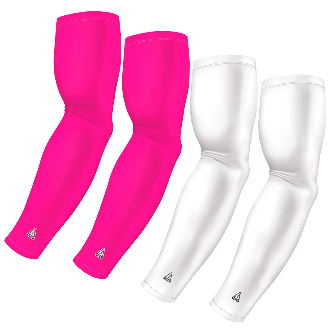 4-Pack Bundle | Solids | White/Pink Bright | Pro-Fit Arm Sleeve, developed for active and repetitive use providing a true compression quality. Designed for durable, long-lasting wear. Unlike other sleeves in the market, with B-Driven Sports – 100% Satisfaction Guarantee, we stand by the phrase “you get what you pay for”.̢‰â Sold as One (1) Sleeve