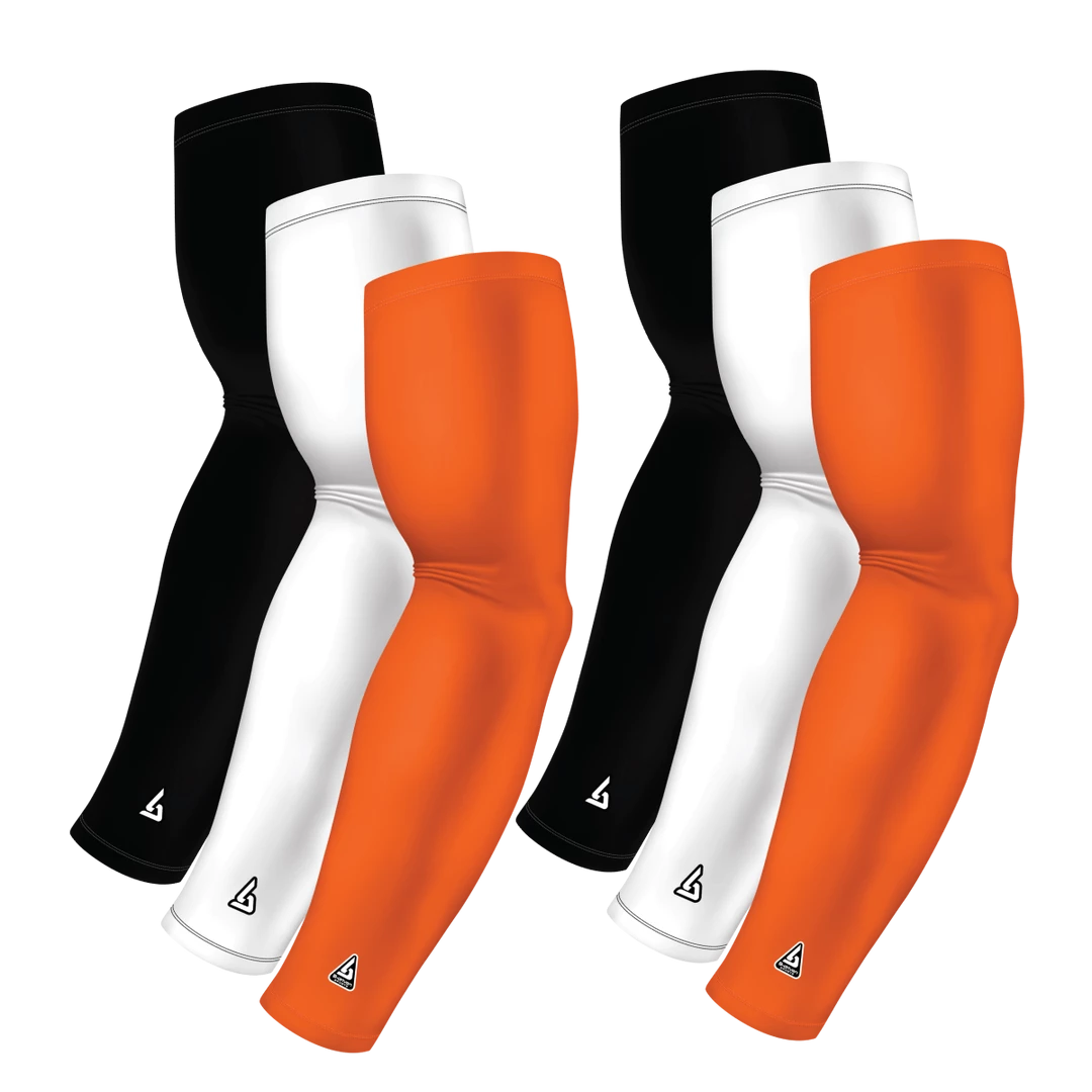 6-Pack Bundle | Solids |White/Black/Orange Medium | Pro-Fit Arm Sleeve, developed for active and repetitive use providing a true compression quality. Designed for durable, long-lasting wear. Unlike other sleeves in the market, with B-Driven Sports – 100% Satisfaction Guarantee, we stand by the phrase “you get what you pay for”.̢‰â Sold as One (1) Sleeve