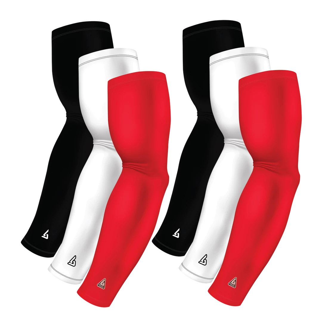 6-Pack Bundle | Solids |White/Black/Red Standard Dark | Pro-Fit Arm Sleeve, developed for active and repetitive use providing a true compression quality. Designed for durable, long-lasting wear. Unlike other sleeves in the market, with B-Driven Sports – 100% Satisfaction Guarantee, we stand by the phrase “you get what you pay for”.̢‰â Sold as One (1) Sleeve