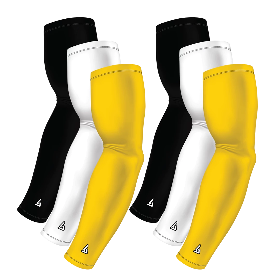 6-Pack Bundle | Solids |White/Black/Yellow Bright | Pro-Fit Arm Sleeve, developed for active and repetitive use providing a true compression quality. Designed for durable, long-lasting wear. Unlike other sleeves in the market, with B-Driven Sports – 100% Satisfaction Guarantee, we stand by the phrase “you get what you pay for”.̢‰â Sold as One (1) Sleeve