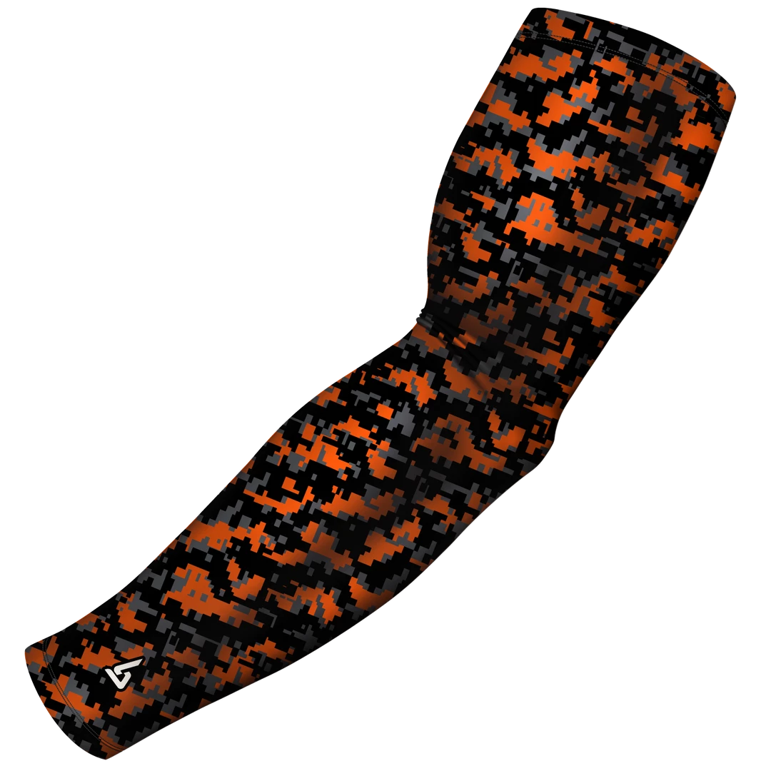 Digital Camo Orange Burnt | Pro-Fit Arm Sleeve, developed for active and repetitive use providing a true compression quality. Designed for durable, long-lasting wear. Unlike other sleeves in the market, with B-Driven Sports – 100% Satisfaction Guarantee, we stand by the phrase “you get what you pay for”.†Sold as One (1) Sleeve
