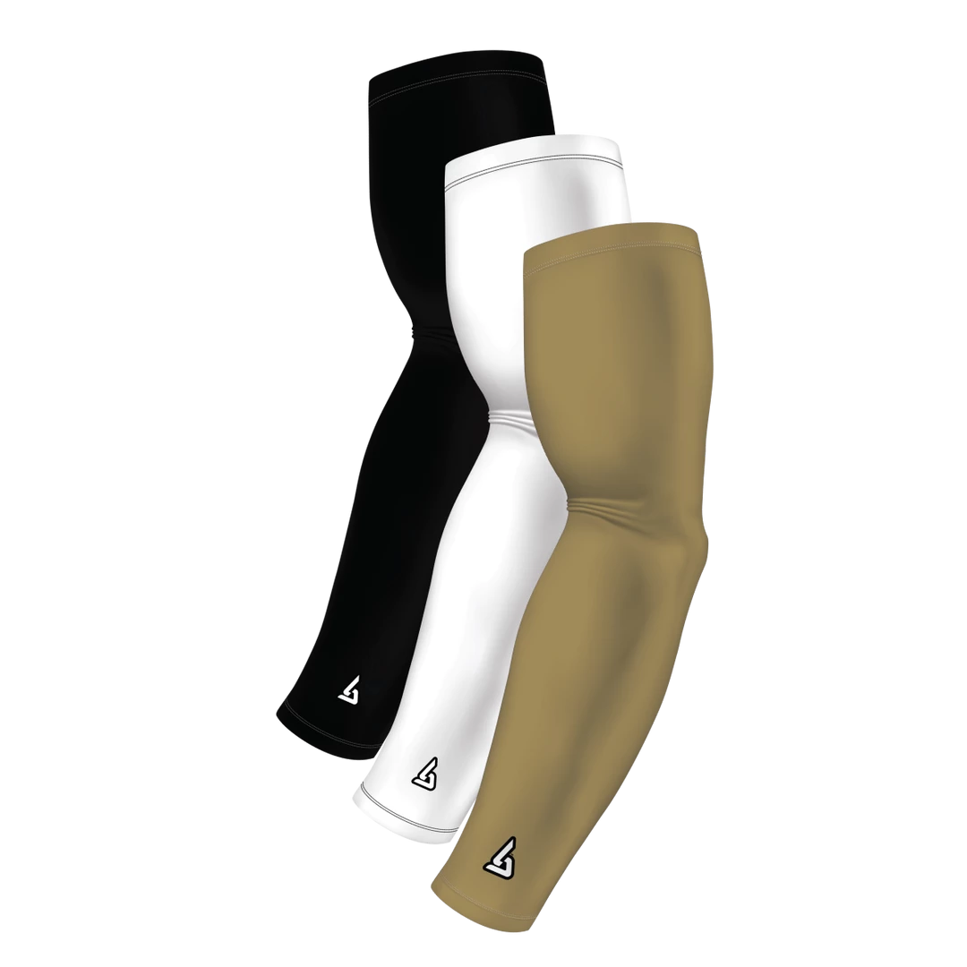 3-Pack Bundle | Solids | White/Black/Gold Standard | Pro-Fit Arm Sleeve, developed for active and repetitive use providing a true compression quality. Designed for durable, long-lasting wear. Unlike other sleeves in the market, with B-Driven Sports – 100% Satisfaction Guarantee, we stand by the phrase “you get what you pay for”.̢‰â Sold as One (1) Sleeve