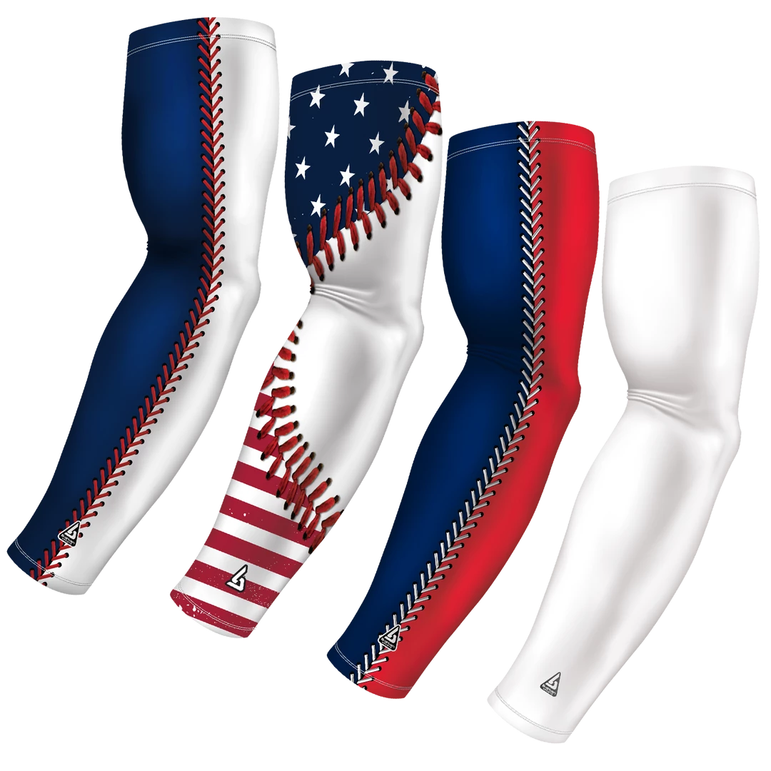 4-pack Bundle | Patriot | Baseball Bundle 1 | Pro-Fit Arm Sleeve, developed for active and repetitive use providing a true compression quality. Designed for durable, long-lasting wear. Unlike other sleeves in the market, with B-Driven Sports – 100% Satisfaction Guarantee, we stand by the phrase “you get what you pay for”.̢‰â Sold as One (1) Sleeve