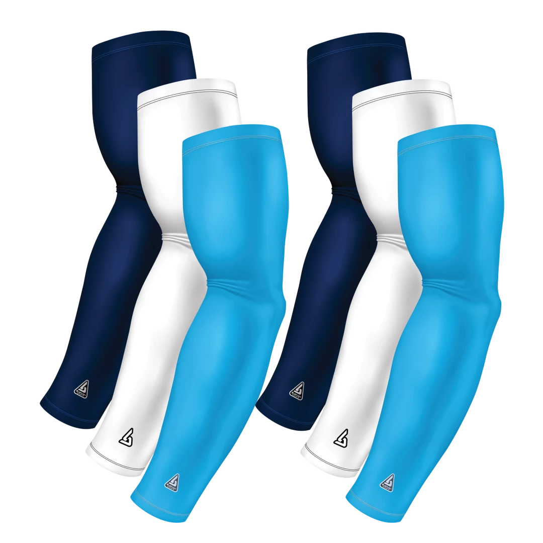6-pack Bundle | Solids | Blue Carolina/White/Blue Navy Dark | Pro-Fit Arm Sleeve, developed for active and repetitive use providing a true compression quality. Designed for durable, long-lasting wear. Unlike other sleeves in the market, with B-Driven Sports – 100% Satisfaction Guarantee, we stand by the phrase “you get what you pay for”.̢‰â Sold as One (1) Sleeve
