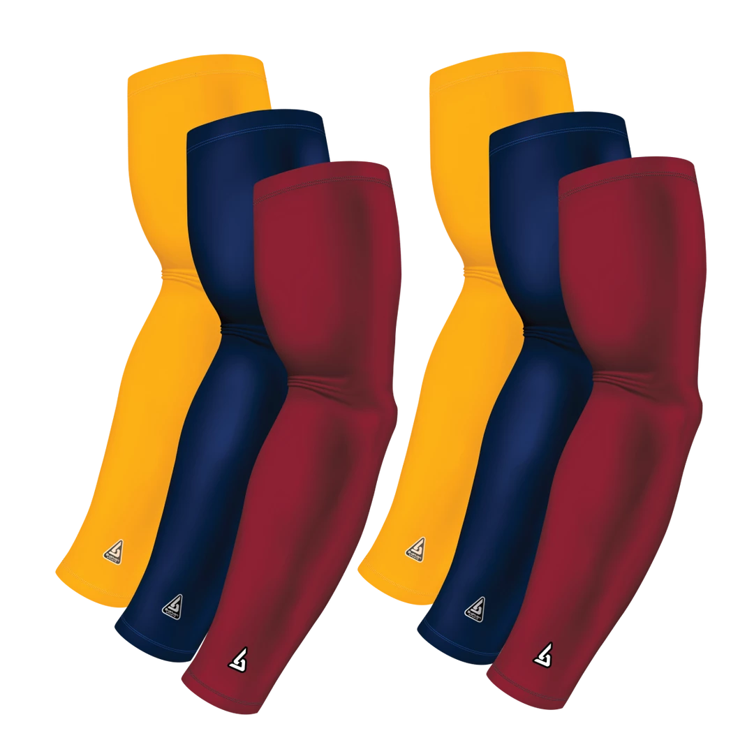 6-pack Bundle | Solids | Maroon Dark/Blue Navy Dark/Yellow Dark | Pro-Fit Arm Sleeve, developed for active and repetitive use providing a true compression quality. Designed for durable, long-lasting wear. Unlike other sleeves in the market, with B-Driven Sports – 100% Satisfaction Guarantee, we stand by the phrase “you get what you pay for”.̢‰â Sold as One (1) Sleeve
