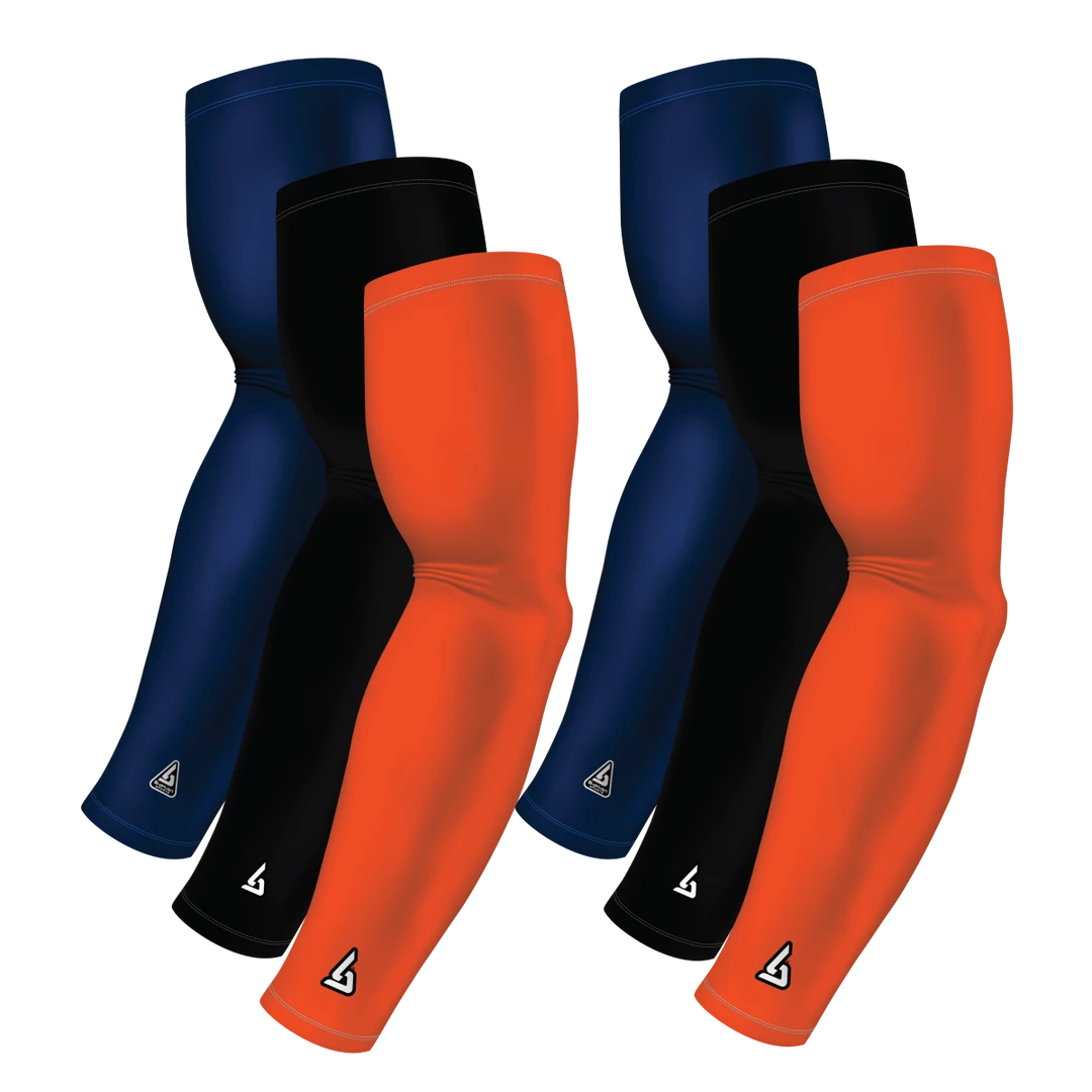 6-pack Bundle | Solids | Orange Dark/Black/Blue Navy Dark | Pro-Fit Arm Sleeve, developed for active and repetitive use providing a true compression quality. Designed for durable, long-lasting wear. Unlike other sleeves in the market, with B-Driven Sports – 100% Satisfaction Guarantee, we stand by the phrase “you get what you pay for”.̢‰â Sold as One (1) Sleeve