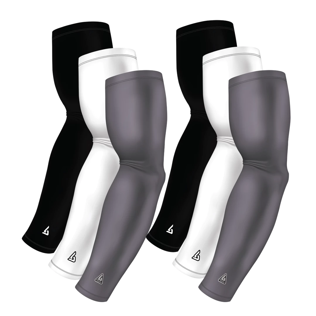 6-Pack Bundle | Solids |White/Black/Grey Dark | Pro-Fit Arm Sleeve, developed for active and repetitive use providing a true compression quality. Designed for durable, long-lasting wear. Unlike other sleeves in the market, with B-Driven Sports – 100% Satisfaction Guarantee, we stand by the phrase “you get what you pay for”.̢‰â Sold as One (1) Sleeve