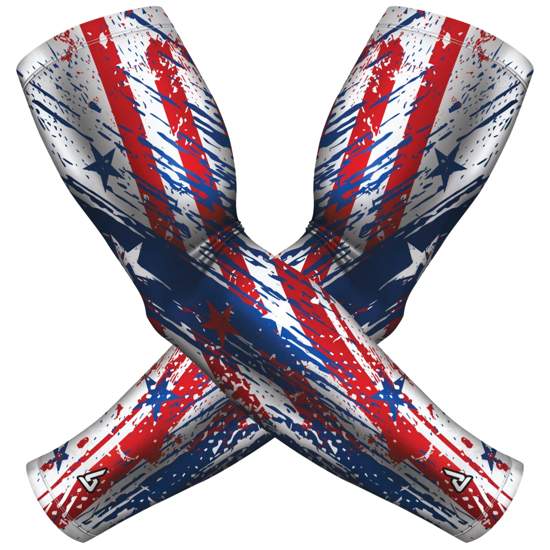 USA Graffiti | UPF 50+ Profit Sun Sleeve Series. A Pro-fit Sun Sleeve for golf, fishing, and other outdoor activity for protection against harmful UV rays. This compression sleeve is designed for casual daily use and strenuous competitive use alike.